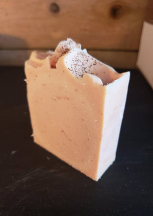 The Strawberry blonde has a refreshing strawberry scent as well as a blend of strawberry and apricot seeds to exfoliate your skin
